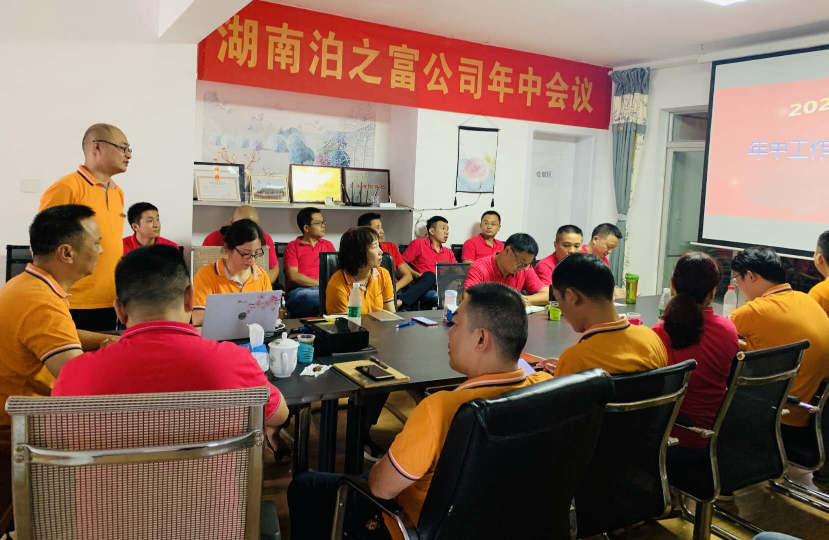 2020年7月24日上午8點(diǎn)30分,在主持人孫勇的開場(chǎng)白中,由長(zhǎng)沙一家人實(shí)業(yè)有限公司(以下簡(jiǎn)稱“長(zhǎng)沙一家人”)和湖南泊之富生物技術(shù)有限公司(以下簡(jiǎn)稱“湖南泊之富”)全體人員共同參與的年中總結(jié)會(huì)議在湖南泊之富辦公室準(zhǔn)時(shí)舉行。