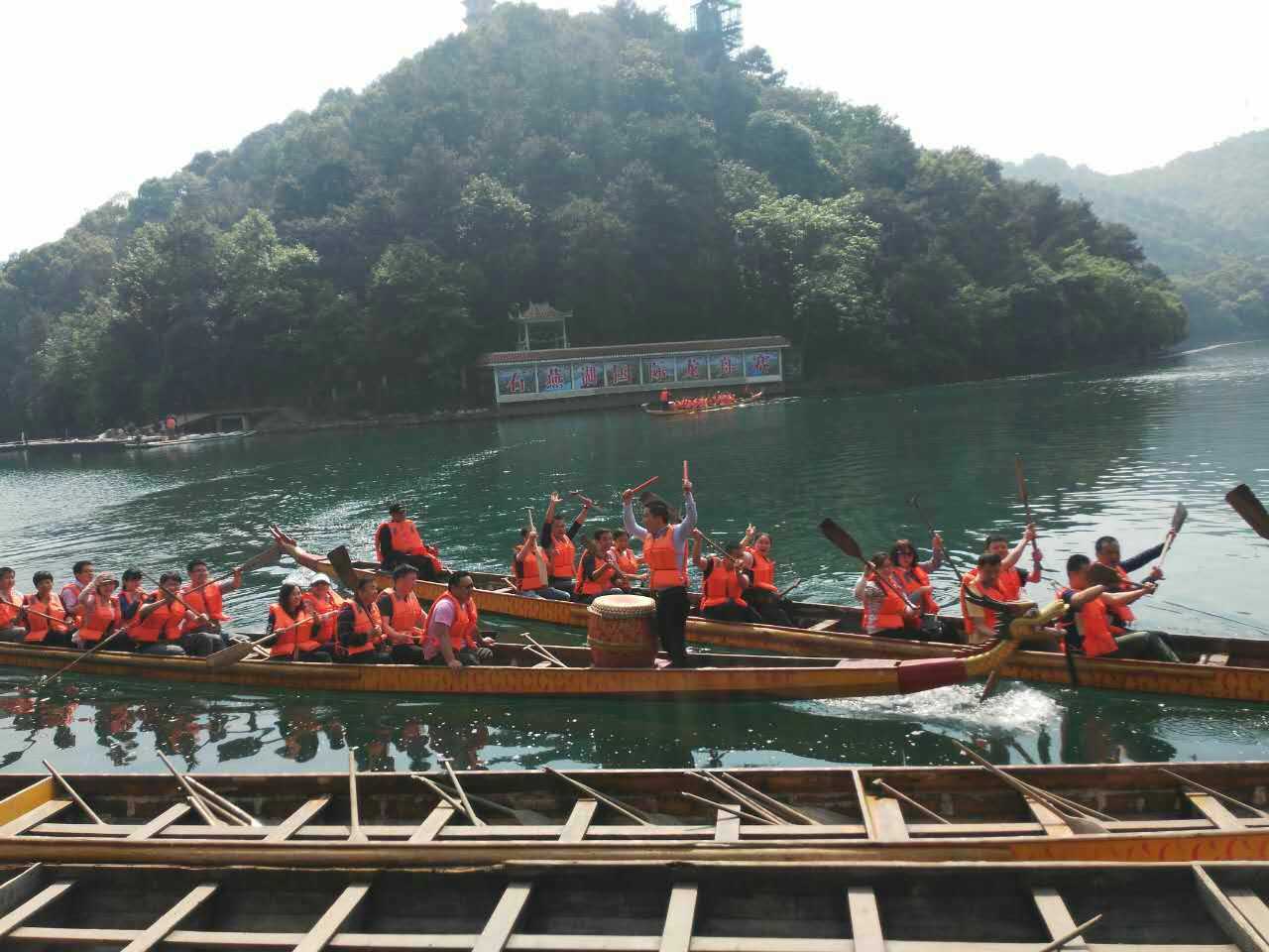 上午9點整,全體員工準時到達目的地——被譽為“人間瑤池”、“湖南九寨”的石燕湖。在導游的帶領下,體驗賽龍舟劈波斬浪活動,大家分成兩組,在群山環(huán)繞,碧波蕩漾的湖水中時休閑、時競賽的氛圍中劃槳開大船。
